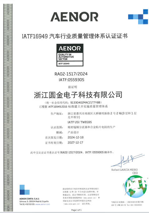一种车规级精密锰铜分流器专利证书