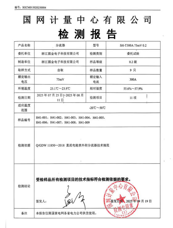 FL-2分流器检测报告